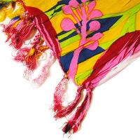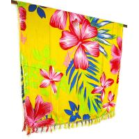パレオ 更紗 マルチクロス ハイビスカスとプルメリア イエロー おしゃれな タペストリー 大判 テーブルクロス アジアン 雑貨 バリ 雑貨 タイ 雑貨