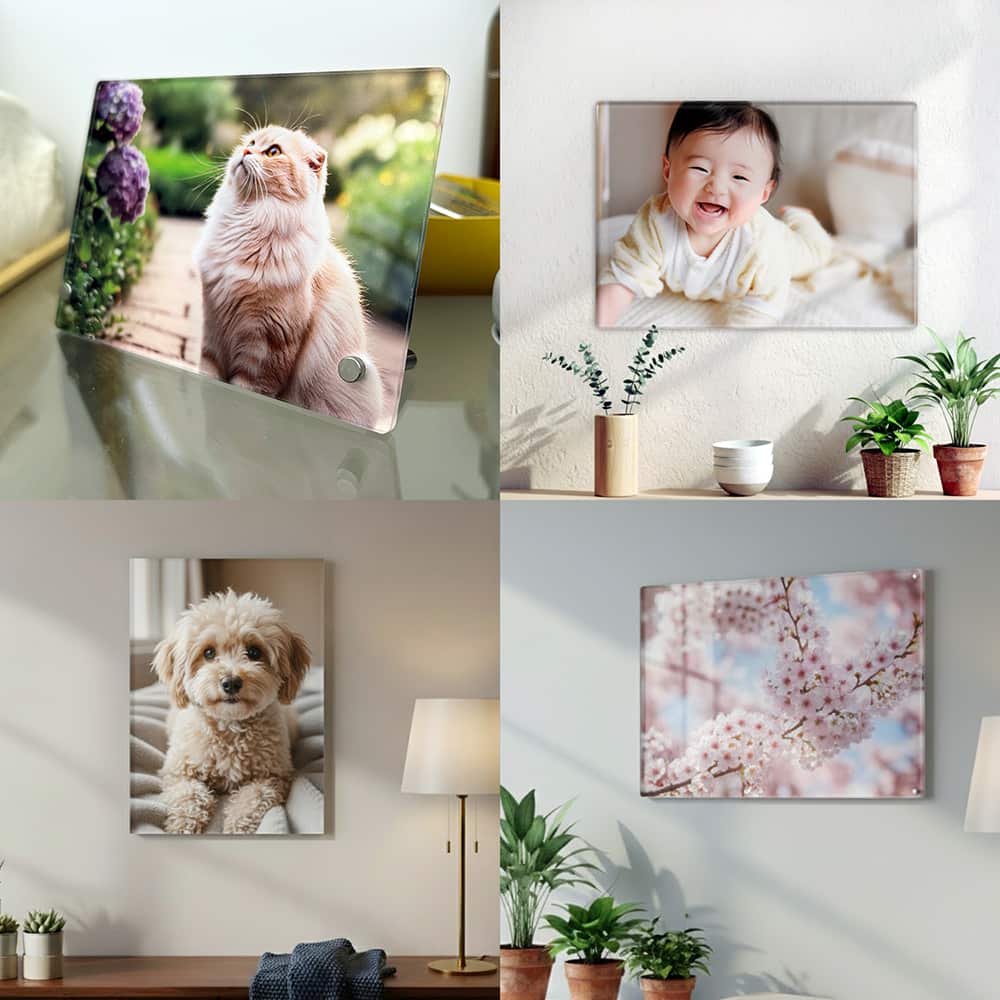 結婚祝い、記念日、大切なペットの写真も、最新AIエンジンを搭載したアクリルフォトなら、息をのむほど美しく再現。まるで写真が浮かび上がるような透明感と、フレームレスの洗練されたデザインが、どんなお部屋にもおしゃれなアクセントを加えます。