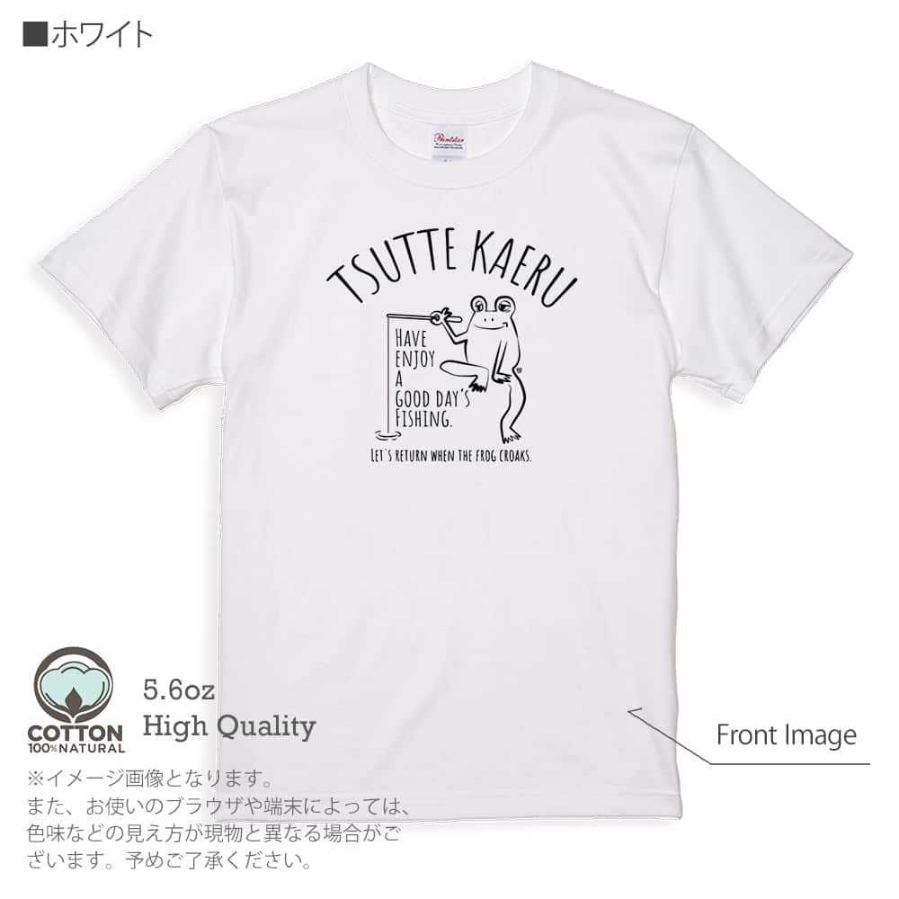 商品説明ヘンテコなカエルが釣り糸を垂らして何かを釣ろうとしているアメカジデザイン。