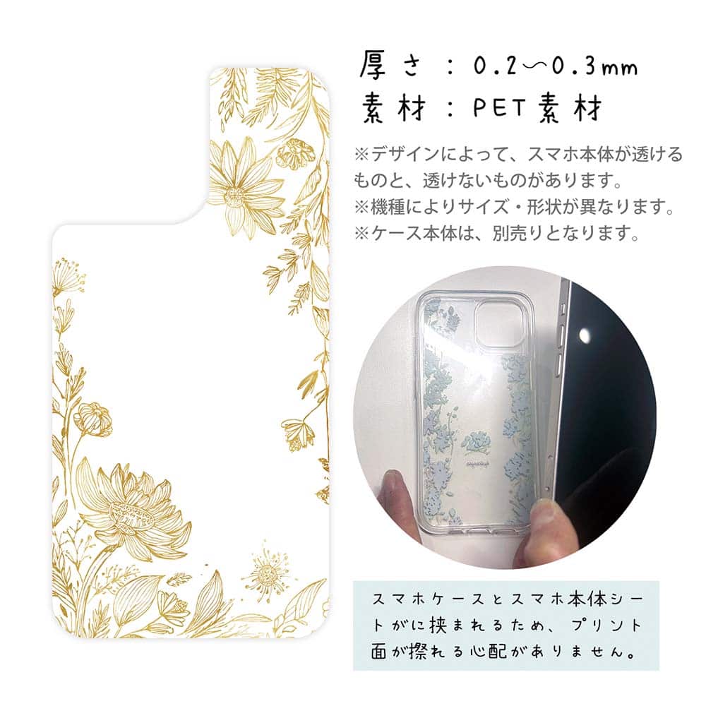 【ご注意】 ※本製品はデザインシートのみの販売です。スマホ本体およびケースは付属しません。 ※ケースの形状により、シートの端を微調整していただく必要がある場合がございます。