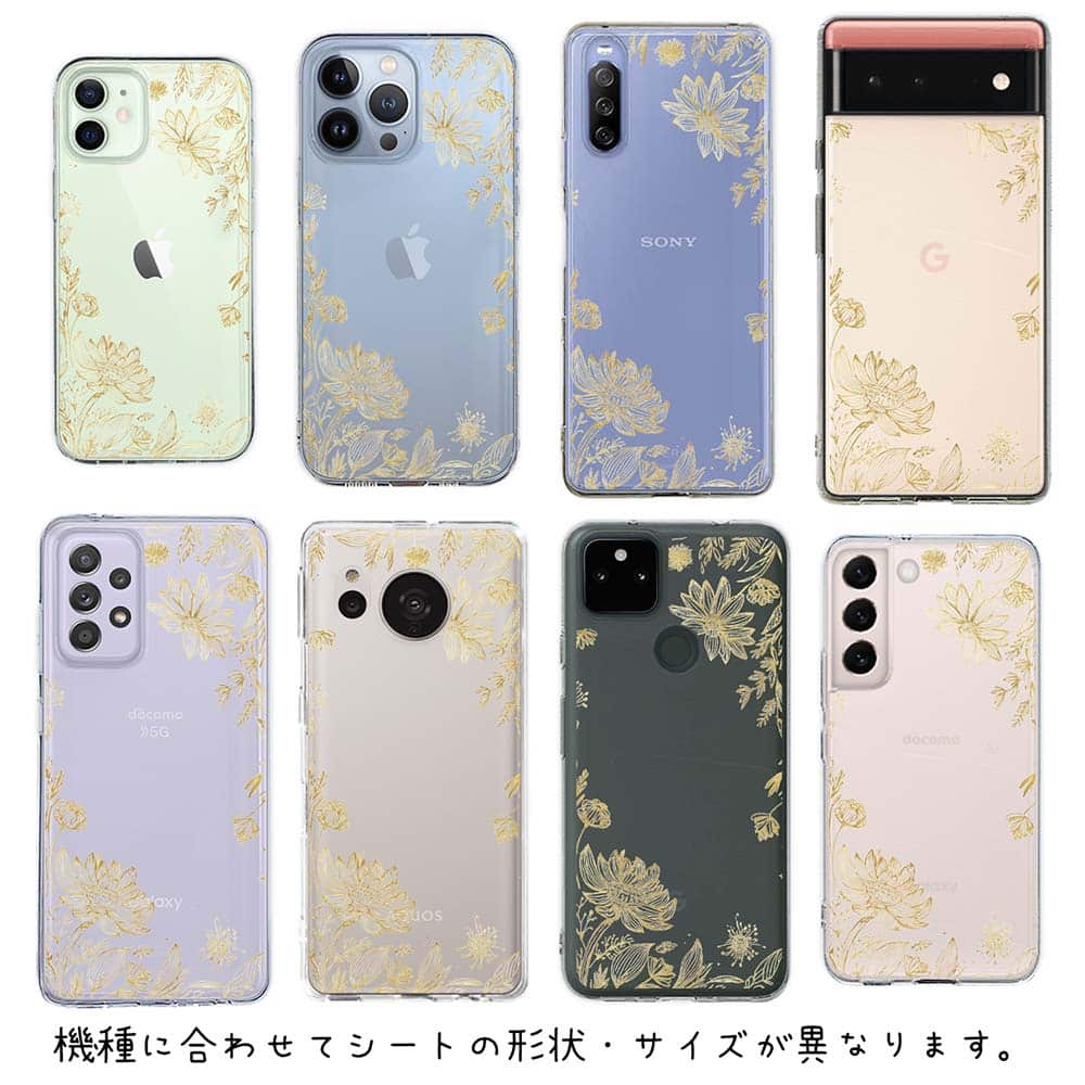 スマホケース in デザインシート 着せ替え インナーシート 背面 透明 クリアケース用 花柄 ゴールデンフラワー2 iPhone Android 全機種対応