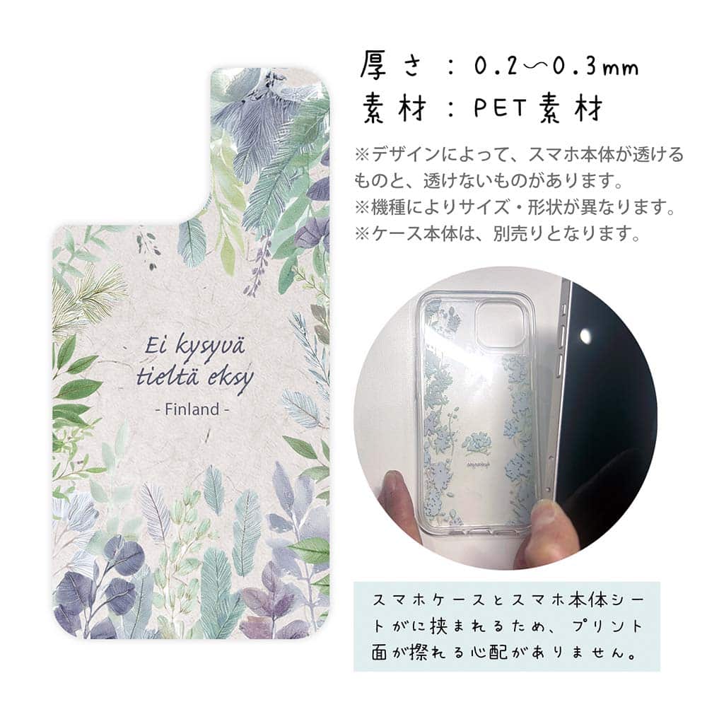 【ご注意】 ※本製品はデザインシートのみの販売です。スマホ本体およびケースは付属しません。 ※ケースの形状により、シートの端を微調整していただく必要がある場合がございます。