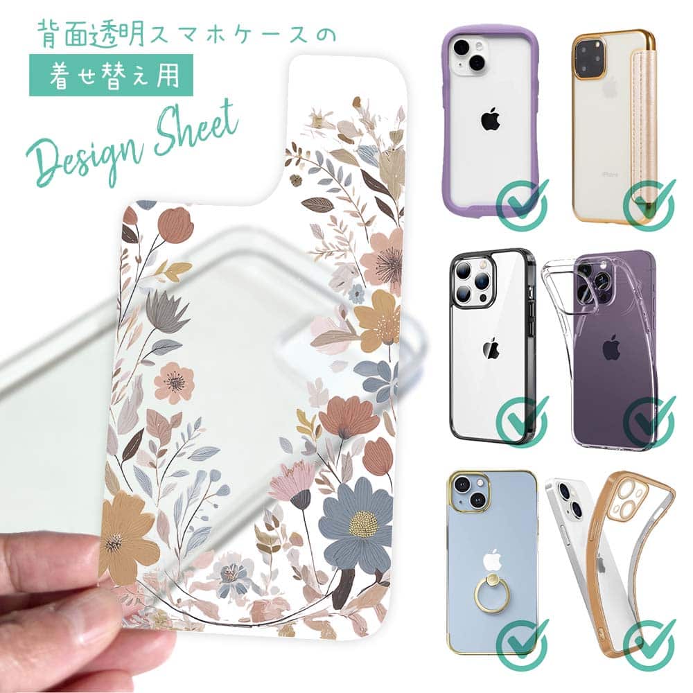 ■クリアケース in デザインシート。スマホを自分らしく華やかな装いに。 透明ケースの内側に挟むだけで、お使いの端末をトレンドのデザインでドレスアップできるインナーシートです。クリアケースの美しさを活かしつつ、高級感あふれる表情へ簡単にカスタマイズが可能です。