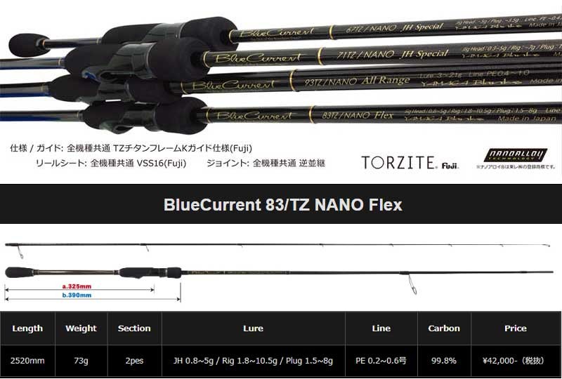 ブルーカレントTZ/NANOはヤマガブランクスの持つライトゲームロッドのノウハウを詰め込んだフラッグシップモデルです。