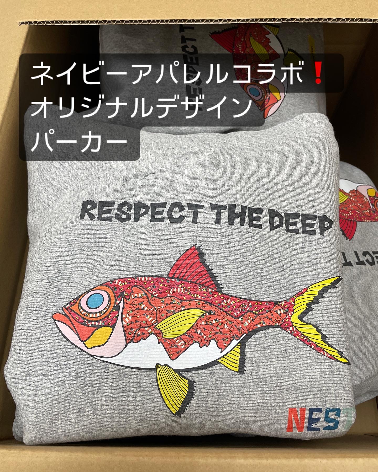 ネイビーアパレル RESPECT・THE・DEEP オリジナルキンメデザインジップパーカー
