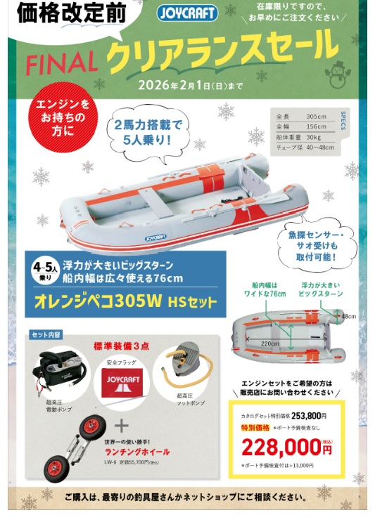 ジョイクラフト オレンジペコ305ワイド HSセット (検なし)ファイナルクリアランスセール