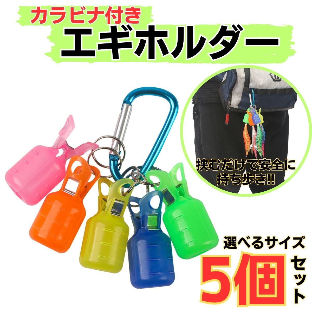 エギング ケース セット イカ 釣り 2号 2.5号 3号 3.5号 4号 ホルダー カバー 安全 釣り針 保護 フック 5個入 カナビラ付き