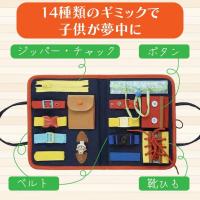 衣類のよく使われている留め具、ボタンなどを網羅しており、お子様のお着替えの練習に役立ちます。