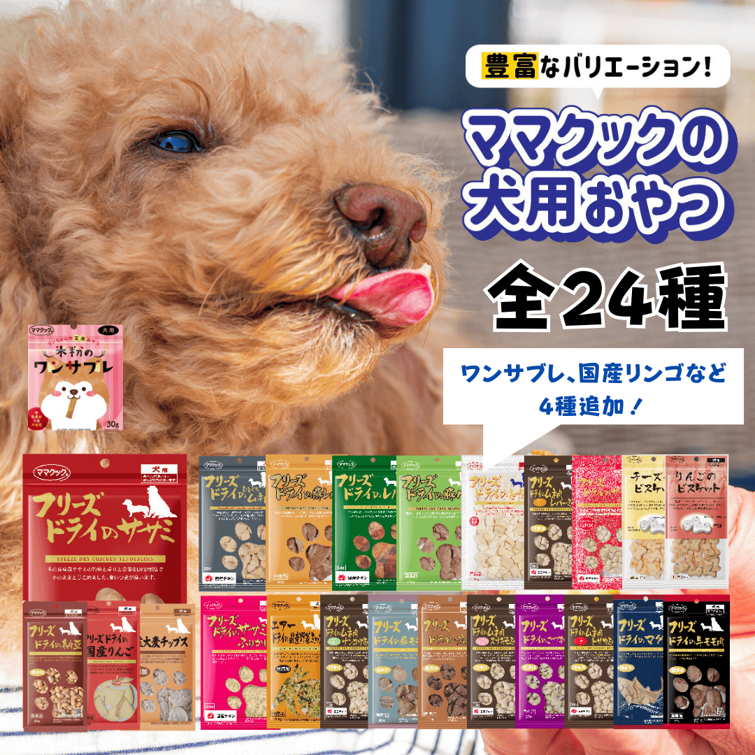 ママクックの大人気犬用おやつ、フリーズドライシリーズの