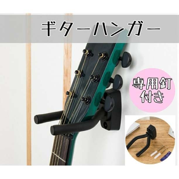 ギター ハンガー 壁掛け スタンド 黒 フック アコギ ベース ウクレレ ぎたー