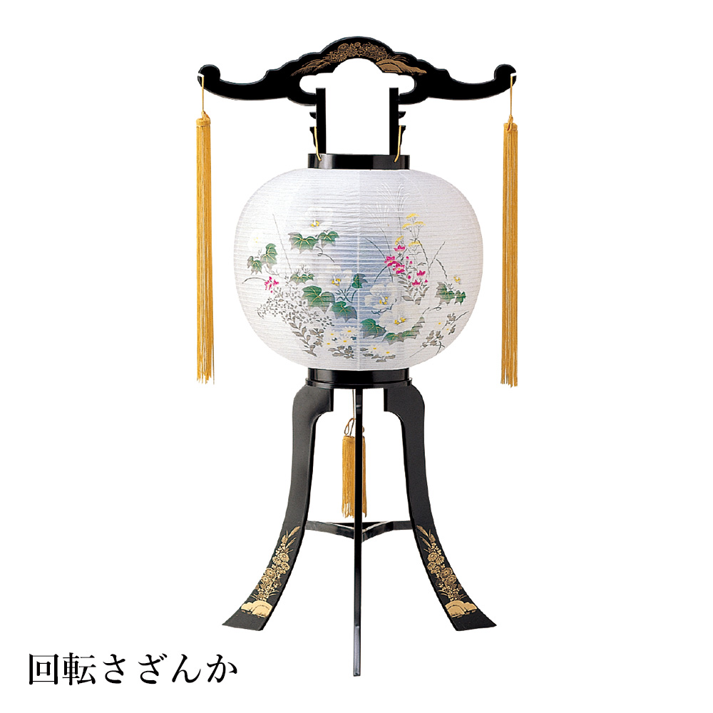 | 商品説明 | 特 徴 | ご先祖のお迎えにお供えする回転行灯(大内行灯)です。 本体はプラスチック製で、ビニロン紙張り火袋の置き提灯です。 明りを灯すと電球の熱により回転筒が回転し、絵柄が火袋に幻想的に映し出されます。 |
