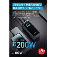 | 出力 | USB-C1 / C2 出力:5V=3A / 9V=3A / 10V=2.25A / 12V=1.5A / 15V=3A / 20V=5A (MAX 100W) USB-A出力:5V=3A / 9V=2A / 10V=6.5A / 12V=1.5A (MAX 65W) 合計出力 (MAX):200W |