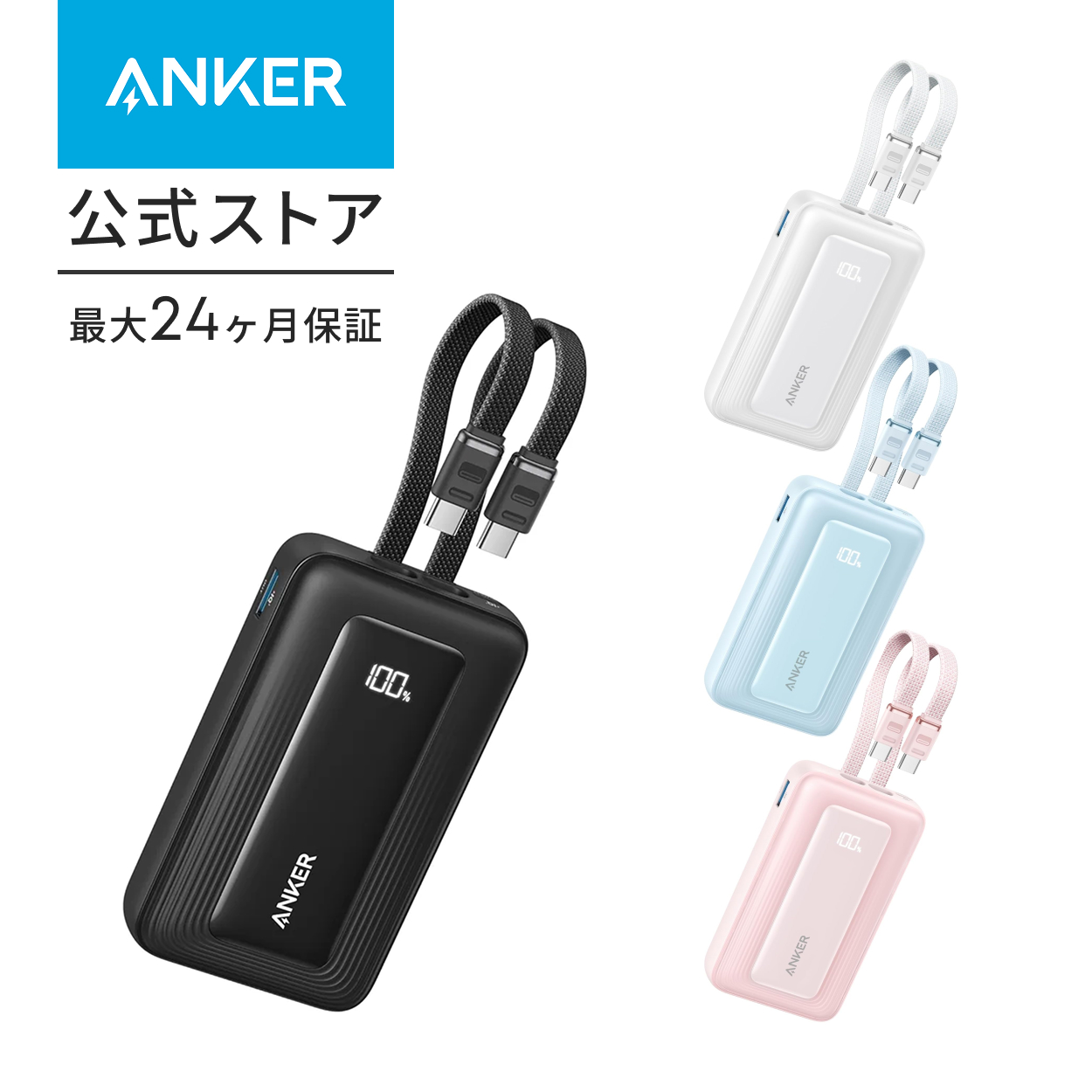 パッケージ内容Anker Zolo Power Bank (10000mAh, 35W, Built-In Dual USB-Cケーブル) 、取扱説明書、カスタマサポート