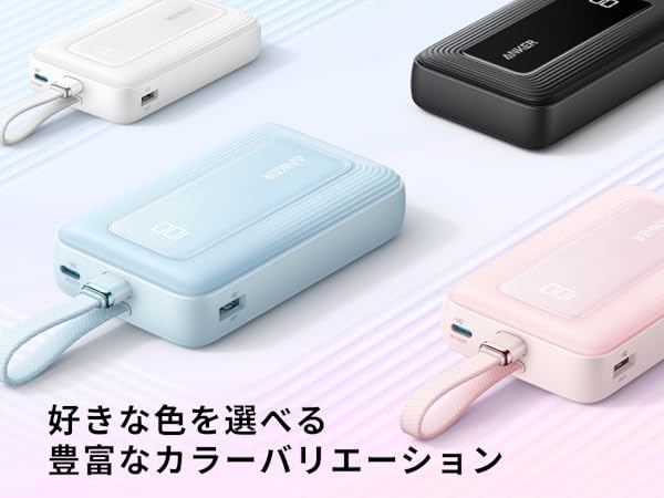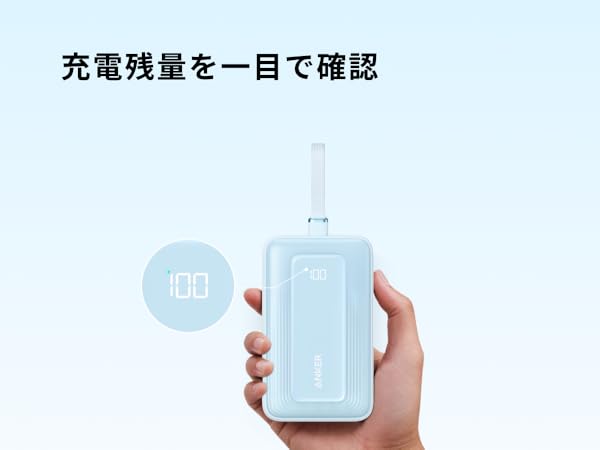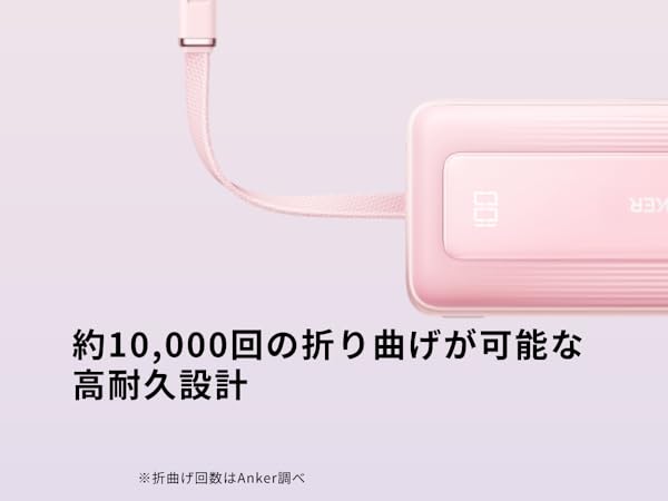 ケーブル一体型でスッキリUSB-Cケーブル一体型のため、外出先でもお使いの機器をいつでも充電可能です。約15cmの一体型ケーブルは約10,000回 の折り曲げにも耐えられる高耐久設計。(折り曲げ回数はAnker調べ)