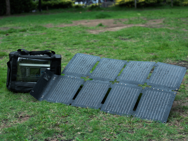 折りたたみ時のサイズはわずかA3サイズ。 ポータブル電源と合わせても簡単に持ち運べます。