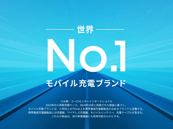 ※20°Cのテスト環境下におけるAnker調べ。専用アプリで超急速充電モード設定時。通常モードでは約60分です。外気温や使用環境により充電時間は異なる場合があります。