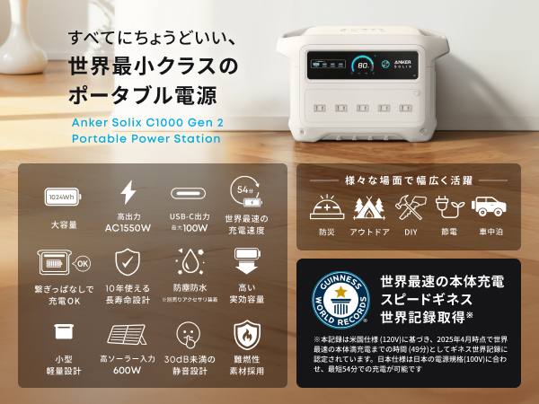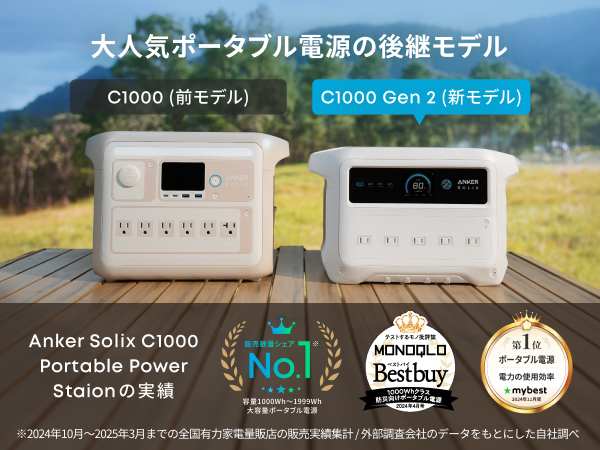 Anker Solix C1000 Gen 2 Portable Power Station オフホワイト 製品の仕様・注意点はこちらAnker Solix PS100 Compact Portable Solar Panel 製品の仕様・注意点はこちらAnkerグループのすべての対象製品(モバイルバッテリー・急速充電器・イヤホン等)は、PSEマークの取得に必要な技術基準に適合しております。