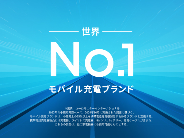 ※20°Cのテスト環境下におけるAnker調べ。アプリで超急速充電モード設定時。