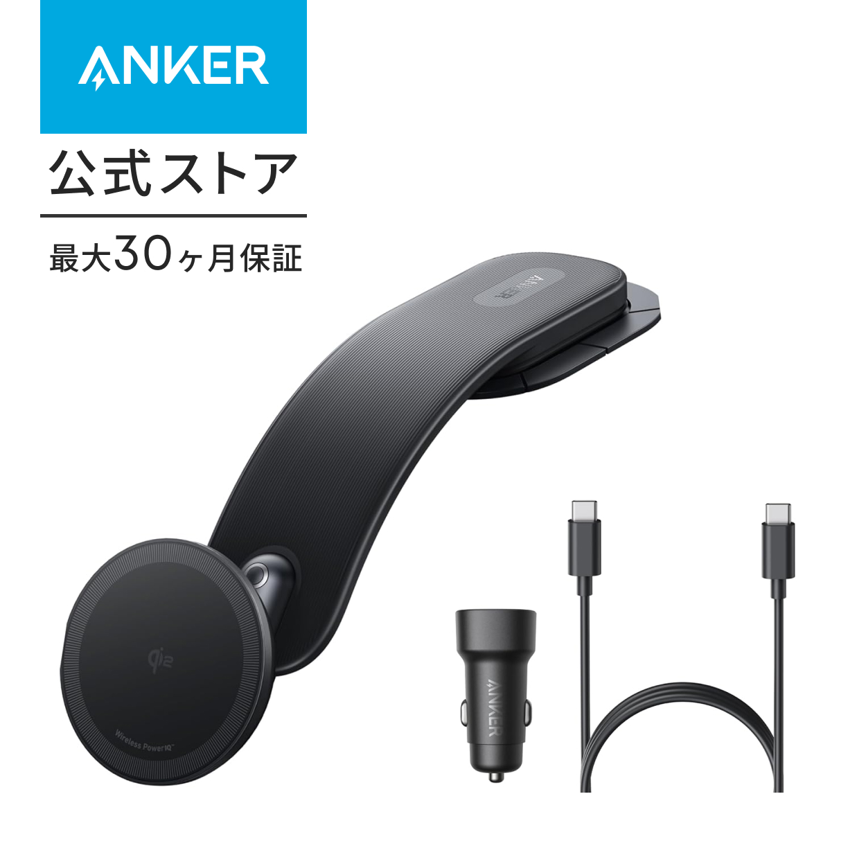 パッケージ内容Anker Nano Wireless Charger (MagGo, 着脱式パッド) 、25W カーチャージャー 、USB-C & USB-Cケーブル (0.9m)、設置用マジックテープ (x2) 、ウェットシート (x2) 、取扱説明書、カスタマーサポート