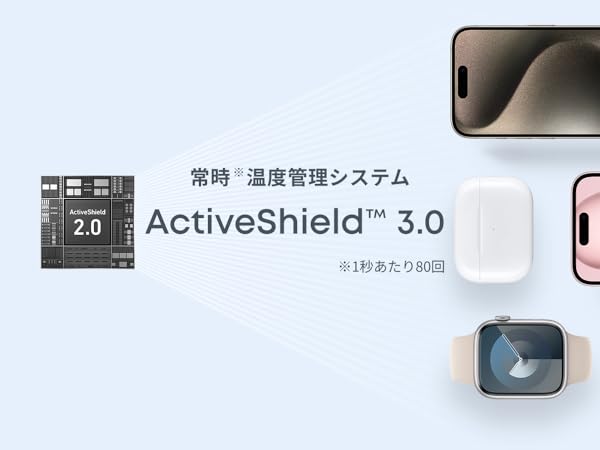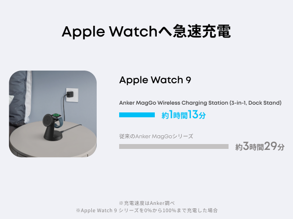 Apple Watchへも急速充電可能Apple Watchへ急速充電が可能です。充電忘れに気付いても、外出前の短時間で急速充電できます。