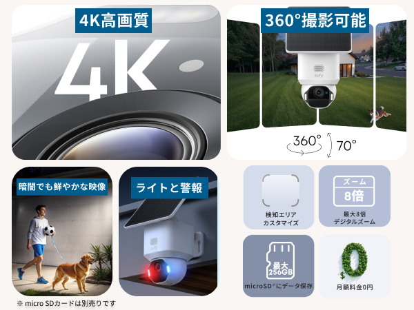 4K高画質(約800万画素)で顔や車の ナンバープレート、荷物などを鮮明に確認可能。 最大8倍のデジタルズームにも対応。 不審者の特徴もしっかり捉え防犯性を高めます。