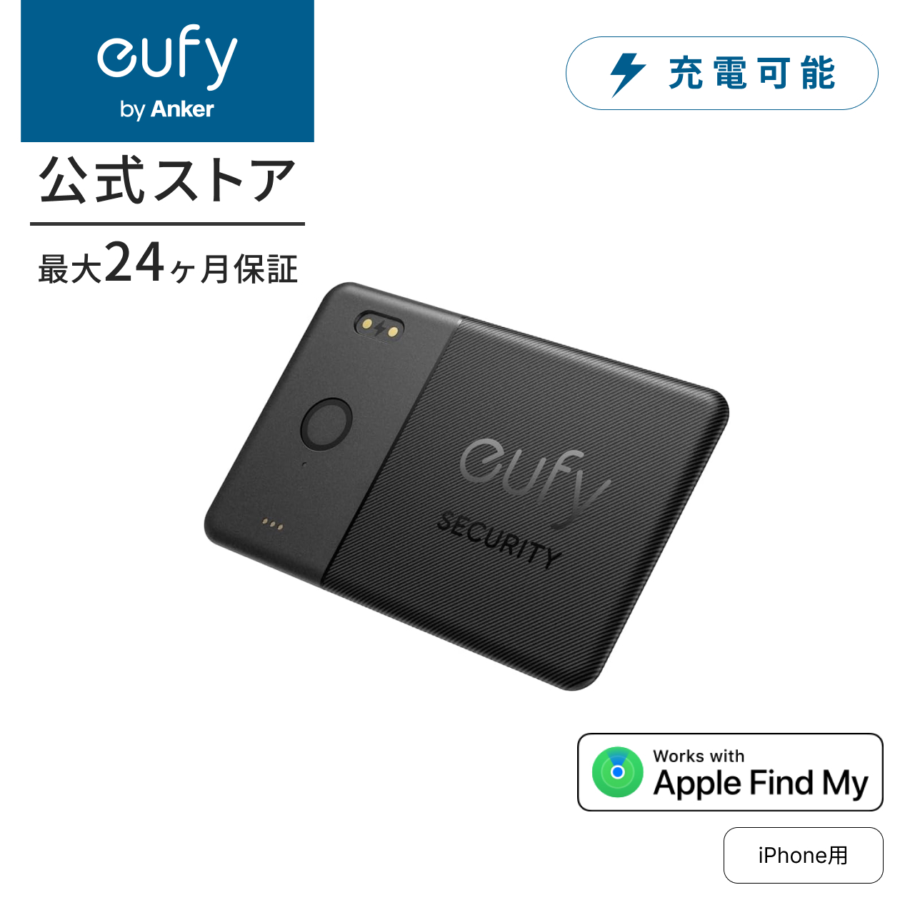 パッケージ内容Eufy SmartTrack Card E30、USB-C & USB-A ケーブル、マグネット式充電器、クイックスタートガイド、カスタマーサポート ※充電にはUSB Type-A充電器 (別売り) が必要です。