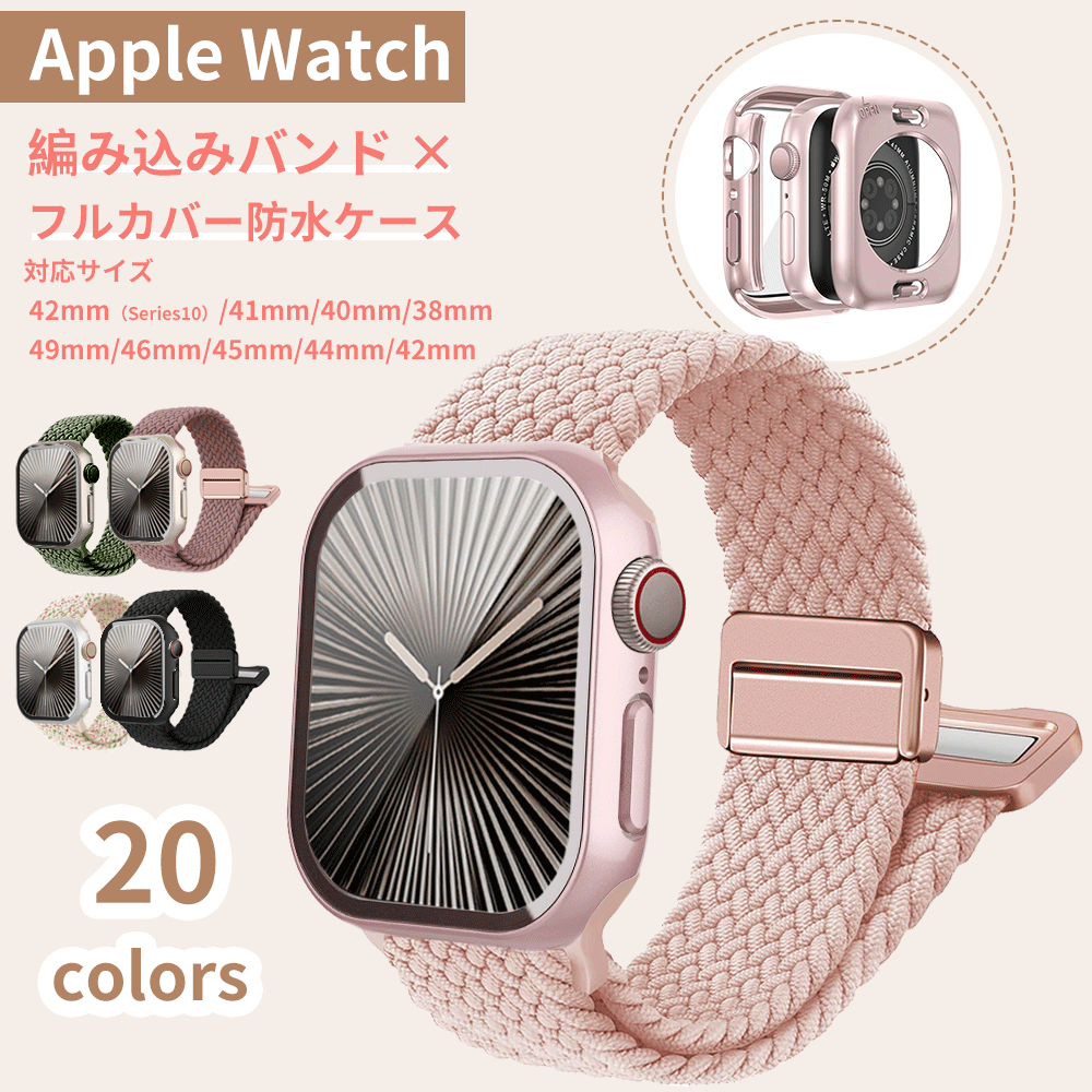 アップルウォッチ バンド カバー セット ナイロン 編み込み マグネット Series10 9 8 7 6 5 4 se Apple Watch 46mm 42mm 45mm 44 41 40