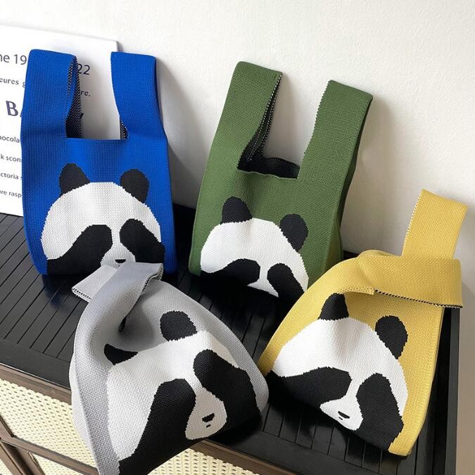 ニットバッグ パンダ トートバッグ ミニトートバッグ ミニバック マルシェバッグ