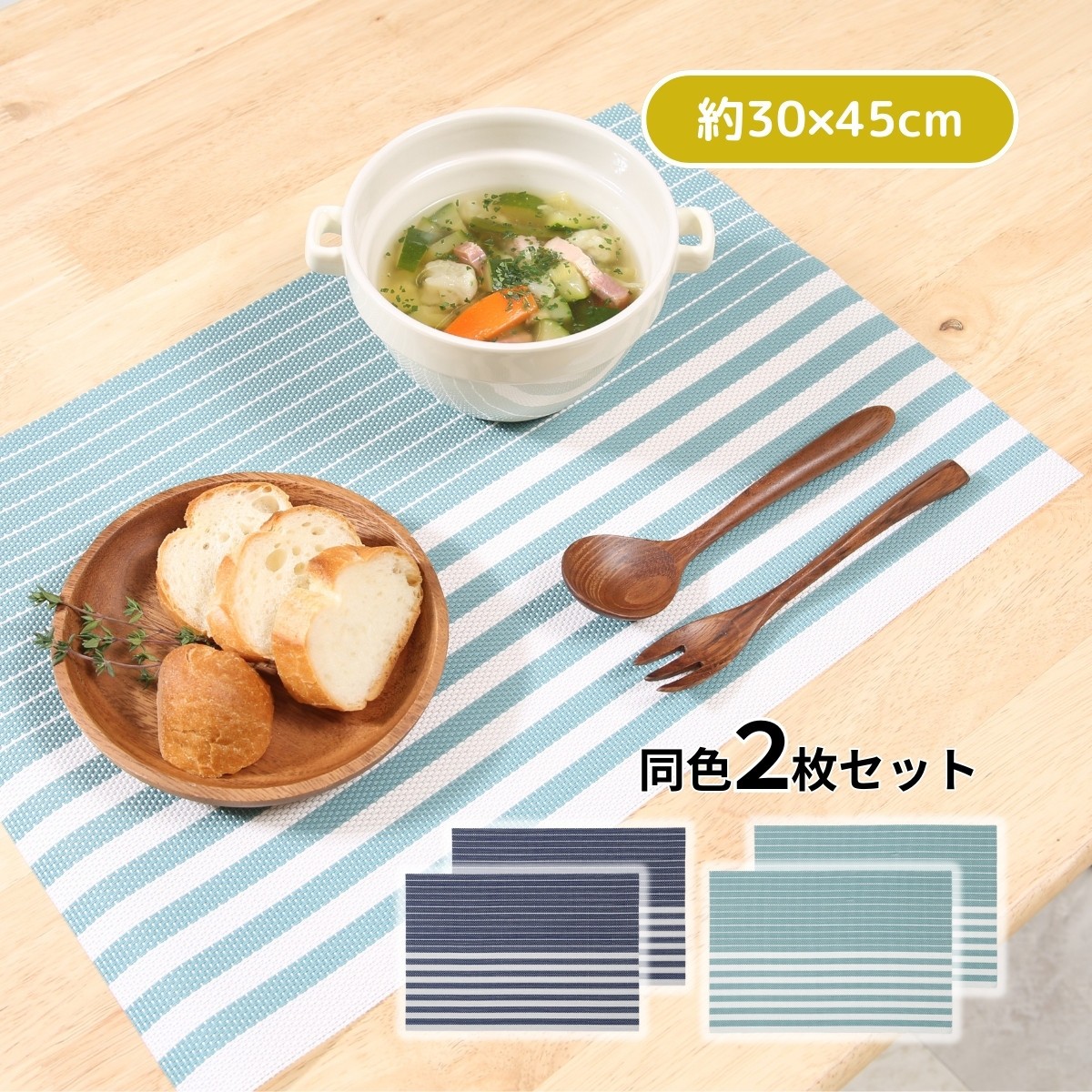 PVCランチョンマット 同色2枚セット ストライプ Pasuto 不二貿易 30×45cm プレイスマット