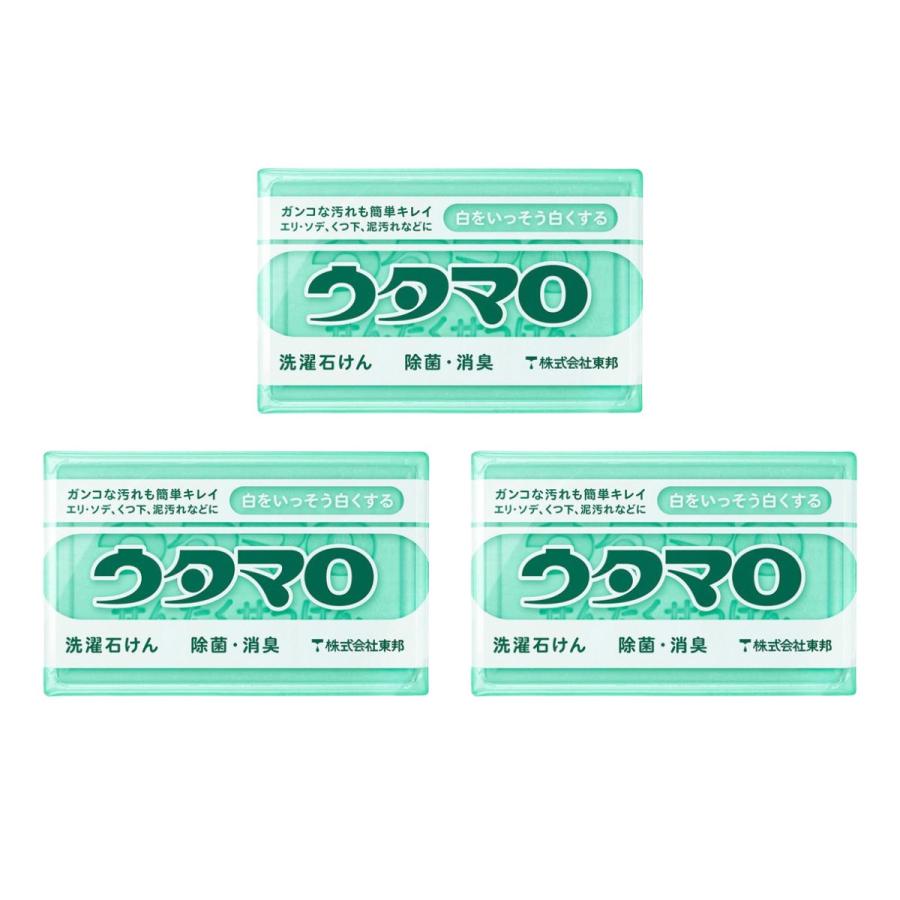 | 使用方法 | ・まず汚れた部分を水で濡らします。 ・ウタマロ石けんを塗ります。 ・しっかりともみ洗いします。 ・洗濯機に入れていつものように洗います。 ※汚れのひどい場合は、ウタマロ石けんをつけてもみ洗いした後、水(ぬるま湯)をはった桶などにつけ置きしてください。 |
