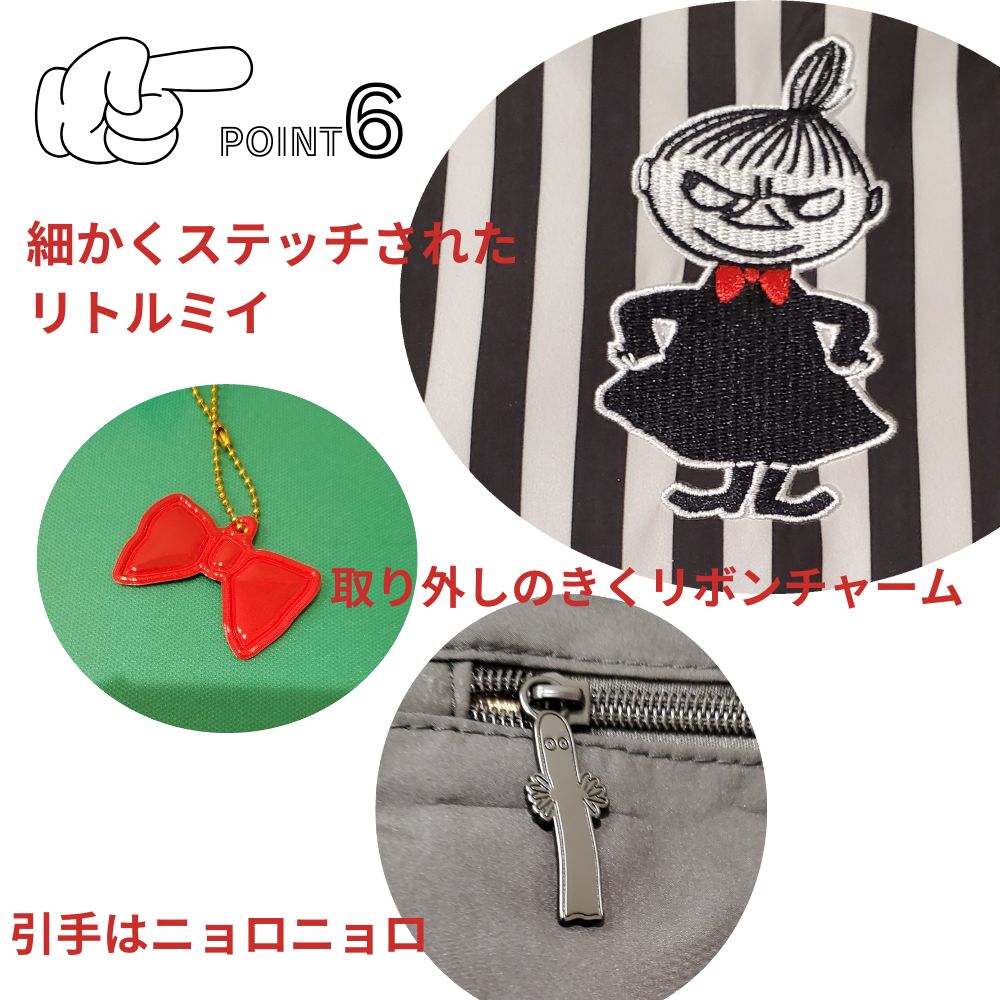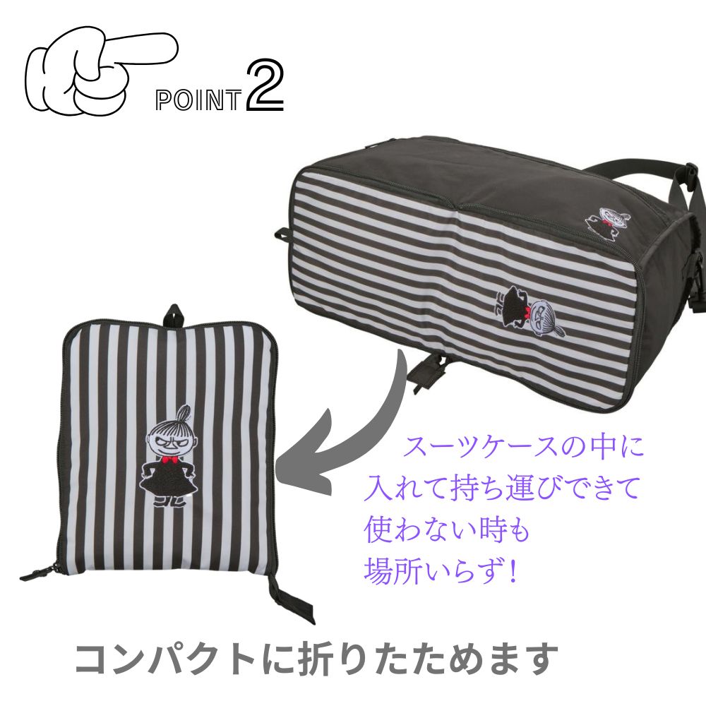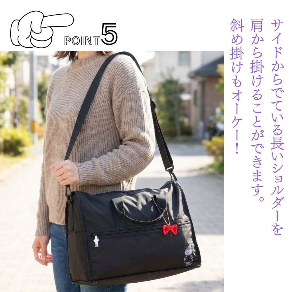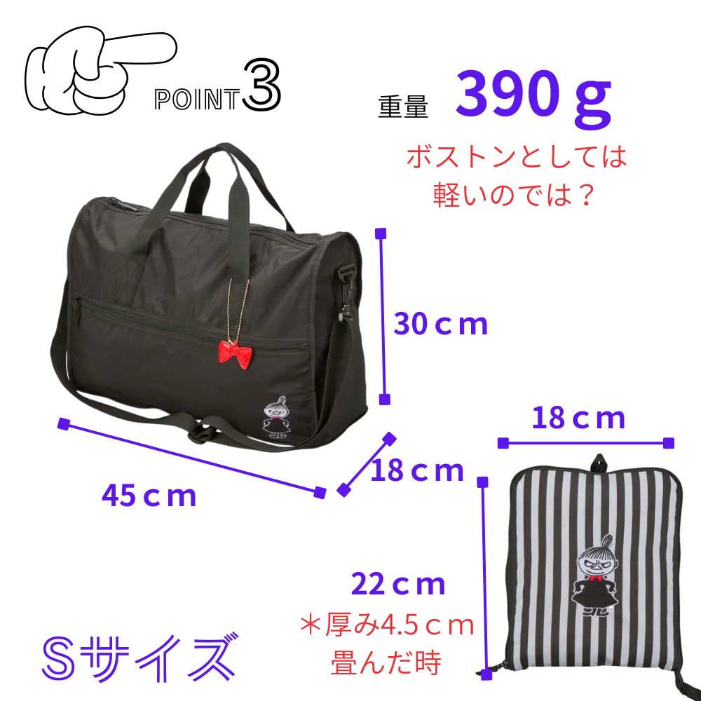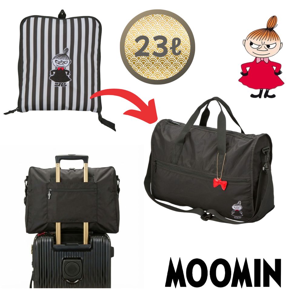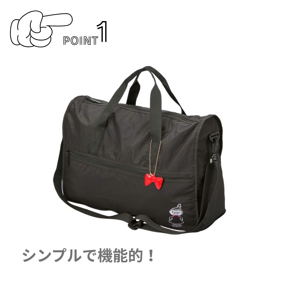 ●黒地にリトルミイのワンポイント刺繍が映えるボストンバッグ。