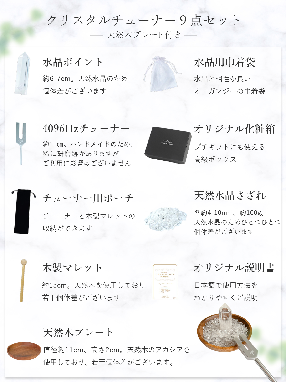 クリスタルチューナー セット 4096Hz 音叉 ヒマラヤ産 マダガスカル産 ヒマラヤ水晶 監修 水晶 パワーストーン さざれ石 入門 セット