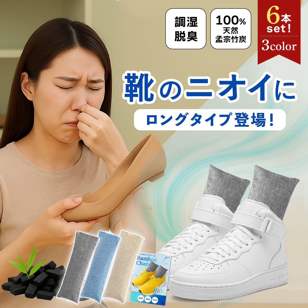 靴 消臭 炭 脱臭 グッズ 大容量 除湿剤 繰り返し 使用 竹炭 乾燥剤 空気清浄 タンス クローゼット 脱臭 湿気 天然素材 6個セット