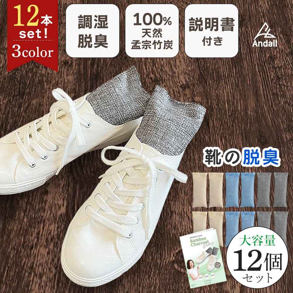 靴 消臭 グッズ 除湿剤 繰り返し 竹炭 乾燥剤 繰り返し使用可 空気清浄 タンス クローゼット 脱臭 湿気 天然素材 12個セット アンダル