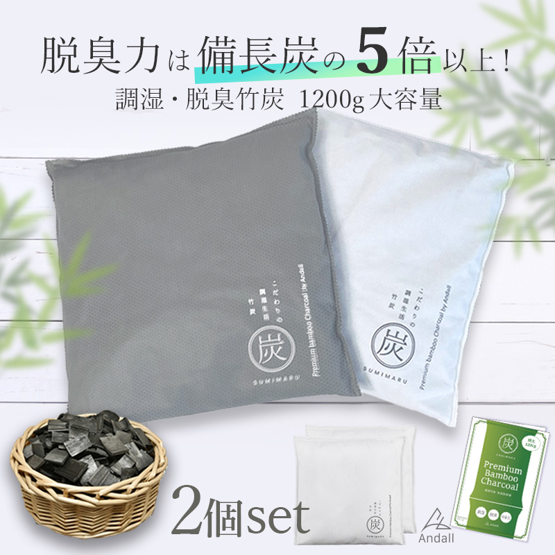 消臭 炭 除湿 調湿 繰り返し 竹炭 特大サイズ 2個セット 乾燥 天然素材 空間洗浄 空気清浄 クローゼット 脱臭 湿気 バッグ 衣類