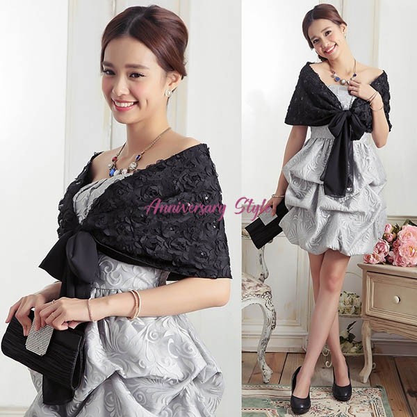 ストール 黒 即納 パーティードレス 大人 上品 オシャレ 光沢 花柄 レース ...