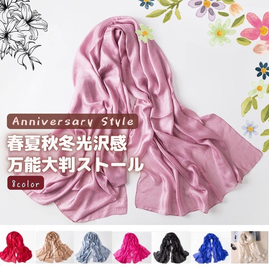 ストール 大判 夏 夏用 春物 亜麻 秋 冬 1年中使える 万能 光沢感 HM-...