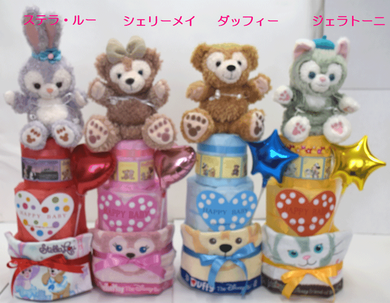 大人気のディズニーからダッフィー、シェリーメイ、ジェラトニーのおむつケーキです!!