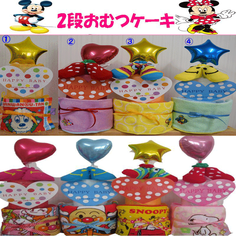 大人気のDisney(ディズニー)からミッキー、ミニー、プーさん、他のおむつケーキです。