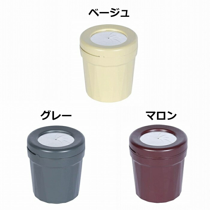 | ご注意点 | ・1つの価格です。 ・本製品の開口部には鋭い箇所がございます。十分ご注意ください。 ・開口部には指や物を入れないでください。怪我や本体の破損の恐れがあります。 ・フタを回すことで絞り羽根が連動し、開閉します。フタの回転具合には個体差があります。ご了承ください。 ・吸い殻を入れる際は、安全のため絞り羽根を全開にしてください。 ・紙巻きタバコを捨てる際は、吸い殻の火種が完全に消火した状態で入れてください。 ・絞り羽根を全開にして更に左へ回すとフタ自体が外れます。フタを戻す際はカチッと嵌まるまで右に回してください。 ・車内で使用する場合は、カップホルダーに収納してご使用ください。また、高温の車内に放置しないでください。 ・車内で使用する場合は、エアバッグの作動や運転の妨げになる場所には設置しないでください。 ・直射日光の当たる場所には設置しないでください。褪色したり材質の劣化に繋がります。 ・火のそばや高温になる物のそばで使用しないでください。 ・製造ロットにより本体の色味は異なります。 ・製造工程上、内部には塗装のムラがみられます。 ・水で洗浄した場合はよく乾かしてください。濡れたまま放置すると錆びる恐れがあります。 ・お手入れの際、アルコールやエタノールは使用しないでください。材質の劣化に繋がります。 ・本製品は玩具ではありません。小さなお子様やペットの手の届く場所で設置・保管しないでください。 |