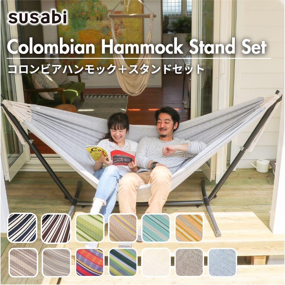 【正規販売店】susabi ダブルサイズハンモック スタンド付き 自立式 コロンビア製 室内 ダブルサイズ すさび 室内 スタンド 屋内 キャンプ