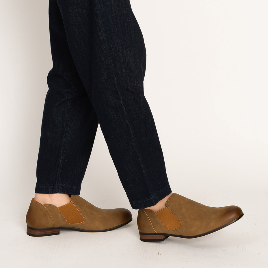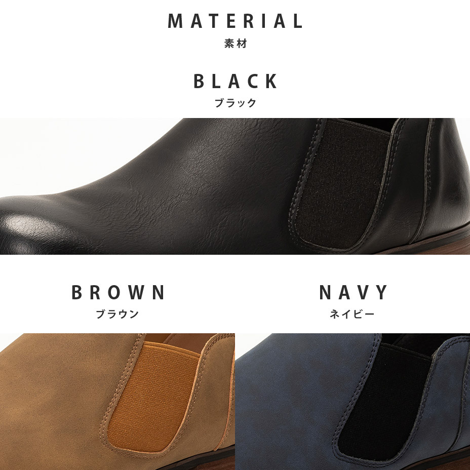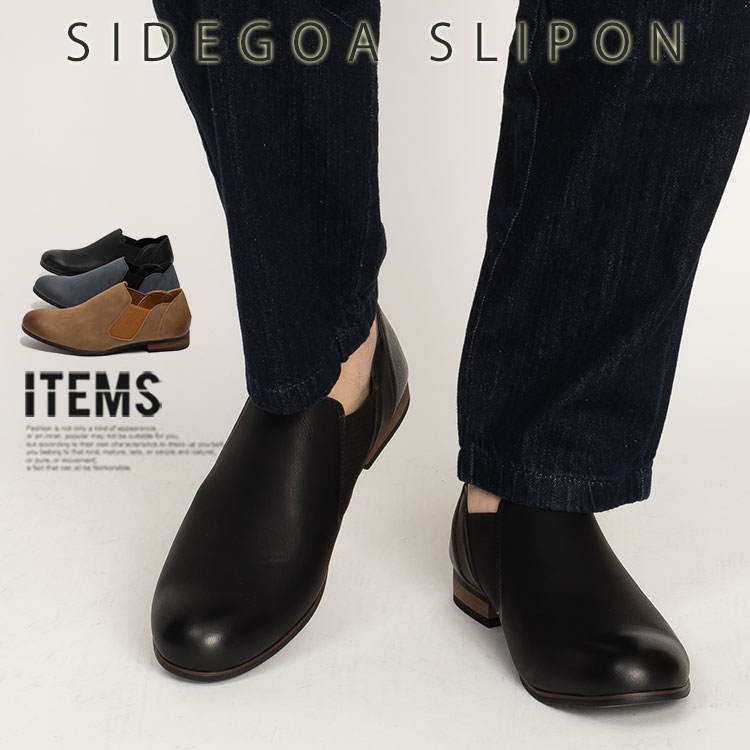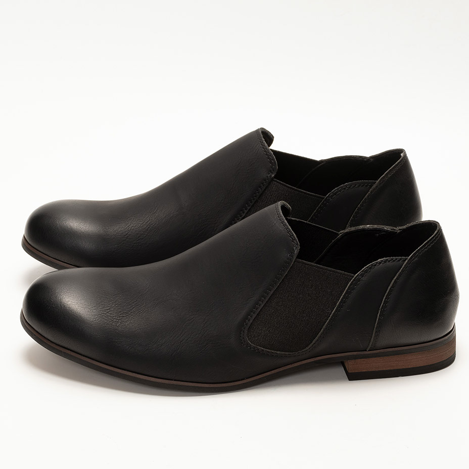 本革のようなリアルな質感のPUレザーを使用。ディティールを生かしたおしゃれな大人の靴。ワードーローブに加えたいサイドゴアシューズです。