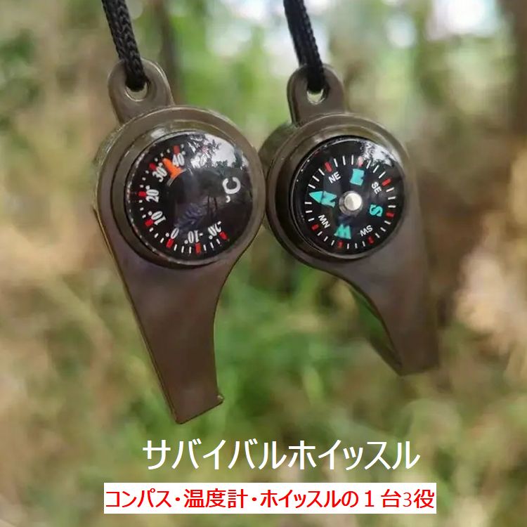 サバイバルホイッスル ホイッスル コンパス 温度計 方位計 安心 安全 首掛け どこでも付けられる キャンプ 防犯 防災 緊急用 災害対策 防災グッズ SOS