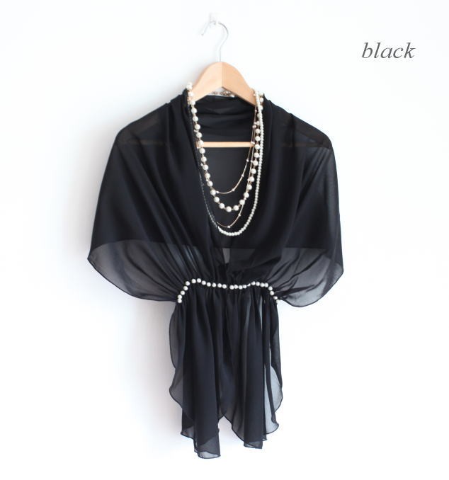 リボンを後ろで結ぶと袖付ボレロになるのでずり落ちません。前で結ぶとさらに女性らしくなります。