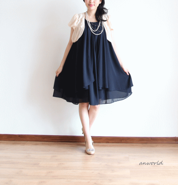 生地をたっぷり使い、さらりと揺れるシフォンがとても女性らしいパーティーワンピース★