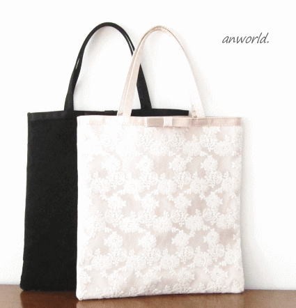 紙袋を卒業しませんか?サイズ:ヨコ27cm×縦30cm/もち手の高さ15cm/片面レース・サテン素材