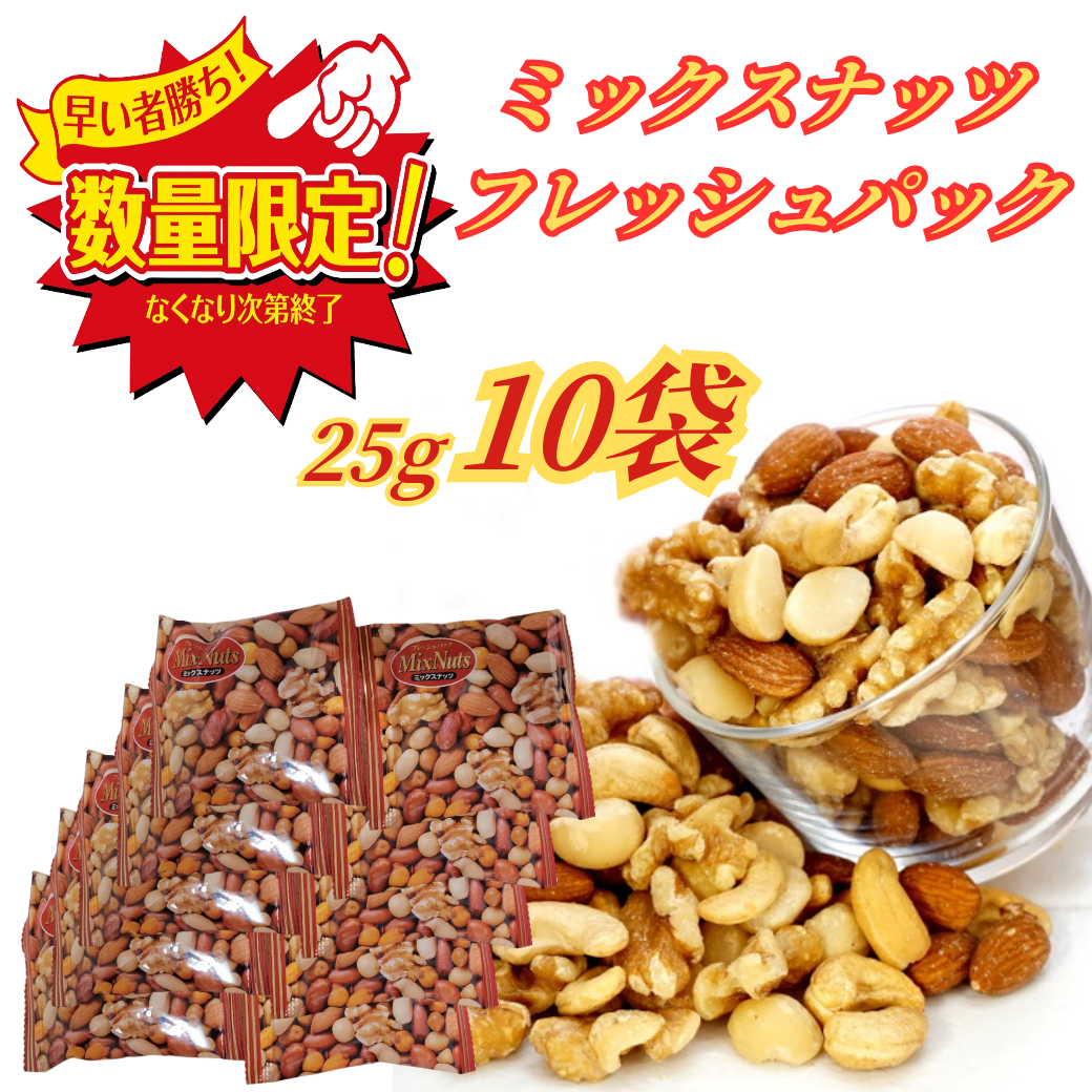 ミックスナッツフレッシュパック25g×10袋入 個包装 ポイント消化 小分け 爆買