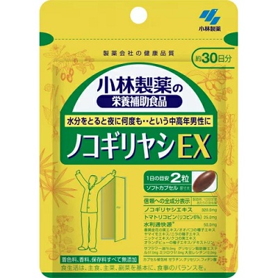 ノコギリヤシエキス、ゼラチン、サフラワー油、デキストリン、春黄金花の実エキス、オオバコの種子エキス、ヤマイモエキス、ニラの種子エキス、ニッケイエキス、クコの実エキス、オランダビューの種子エキス/グリセリン、グリセリン脂肪酸エステル、ミツロウ、トマトリコピン、レシチン(大豆由来)、フィチン酸