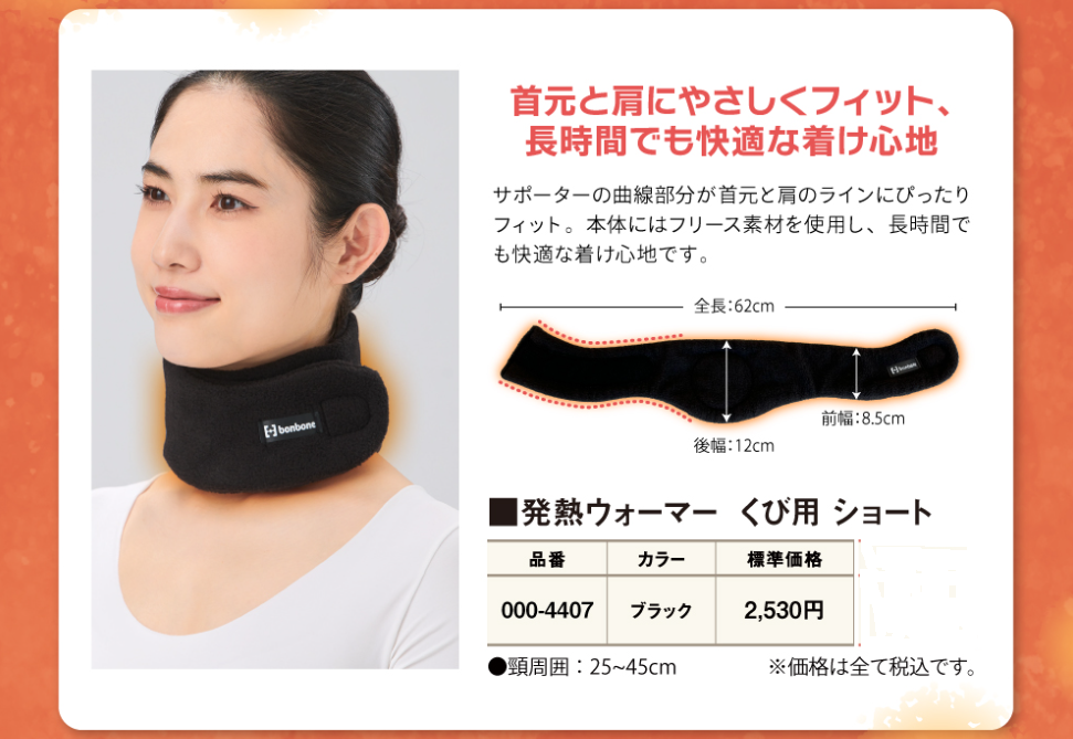 ・本体にはフリース素材を使用し、長時間でも快適な着け心地です。