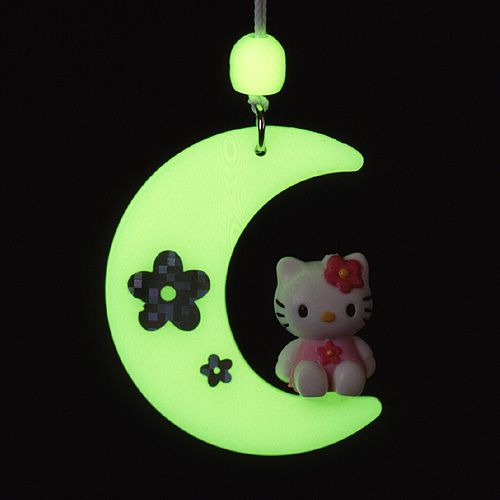 太陽や照明の光を吸収して、暗くなるとキティちゃんが柔らかい光を放ち、